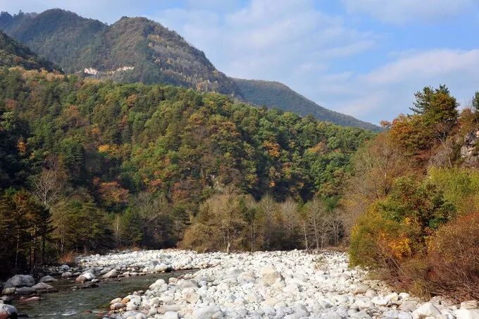 陕西境内倒是有这么一座贯穿八百里秦川的山脉,这就是大名鼎鼎的秦岭山脉!最高海拔3767米,第二高度鳌山3476米,中国比较著名的徒步线路鳌太线就是这里了。秦岭被赋予中国南北气候的分界线,具有绝对的气候,地质影响力。在西安周边就有七十二峪,每个峪口都是可以进入到秦岭之间,每年的十月中下旬秦岭成了陕西人赏秋色,观红叶的好去处。
