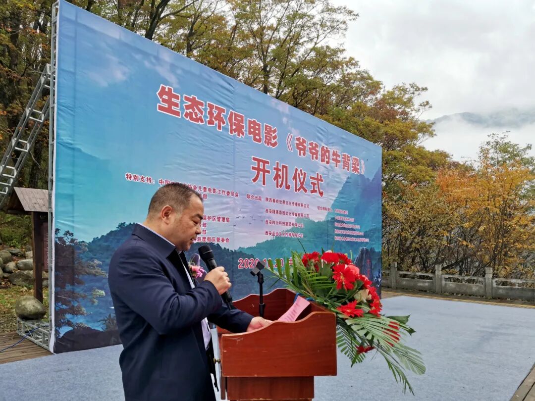 经过一年多的精心筹备, 10月20日上午,烟雨空蒙,生态环保电影《爷爷的牛背梁》在陕西商洛柞水县的牛背梁国家森林公园月亮垭盛大开机。陕西省林业局、商洛市委宣传部、柞水县委、县人大、县政府、牛背梁旅游度假区管委会以及西部投资集团、牛背梁国家森林公园、盘龙药业、红豆杉庄、陕西省水务集团、终南山寨、秦楚古道景区等单位的领导出席了开机仪式。2020年4月20日,习总书记来到了牛背梁,站在月亮垭,深情远眺牛背梁,感概“秦岭和合南北,泽被天下,是我国的中央水塔,是中华民族的祖脉和中华文化的重要象征”!柞水县人民政府刘作荣副县长高度评价了影片《爷爷的牛背梁》:拍摄《爷爷的牛背梁》,不仅是对习总书记“两山论”的现实践行,也是宣传秦岭、保护秦岭的现实需要,更对推进柞水文旅事业发展、生态环境保护等具有十分重要的现实意义。影片由西部投资集团、牛背梁国家森林公园等单位联合摄制,由陕西秦岭世界文化传播有限公司、西安四为科技集团有限公司等单位联合出品,由青年导演孙军执导,曾成功塑造了孙中山、邓小平两个伟人经典银幕形象的国家一级演员马少骅饰演片中一辈子献给秦岭的护林员“爷爷”,曾在《那年花开月正圆》《我和我的家乡》中表现上佳的小童星韩远琪饰演城里出生、调皮的“孙子”,此外,西安电视台著名主持人、“熊猫大使”孙维和中俄混血油画家、“朱鹮大使”晏子也在片中友情出演“校外辅导员”,晏子还将她在国际上获奖的一幅《牛背梁上的羚牛》捐献给摄制组。西部投资集团董事长邢雅江先生表示:希望通过这部影片教育青少年要热爱秦岭,保护秦岭,提高环保意识,共同努力将牛背梁景区生态环境打造的更加美好,将总书记称赞的“养在深闺人未识的天然氧吧”的牛背梁魅力传遍全国。牛背梁国家森林公园负责人周恒先生代表联合摄制单位发言:欢迎摄制组来牛背梁景区拍摄,将竭尽全力提供各种便利,全力配合拍摄工作,讲好牛背梁的故事,助力新时代青少年健康成长,也欢迎广大青少年朋友来牛背梁研学实践。本片将打造一部精彩的儿童教育、生态环保大片。影片计划明年4月20日盛大首映,届时将送电影进校园,希望有更多青少年通过观看本片,亲近大自然,了解热爱秦岭,争做秦岭生态小卫士。影片《爷爷的牛背梁》讲述了:上世纪八十年代,唐志宏从部队转业后,来到了牛背梁,成为一名护林员,一辈子献给了秦岭;他的孙子唐明轩在省城出生,调皮、厌学、喜欢网游。老唐趁“国庆”长假,将孙子“拐”回了牛背梁,慢慢地,孙子迷上了秦岭、牛背梁,变得强壮、自信,爷孙俩还联手森林公安,破获了一个盗猎团伙。学校聘请老唐和“熊猫大使”孙维、“朱鹮大使”晏子作为校外辅导员,在蓝天白云下的牛背梁,为孩子们讲述秦岭故事……