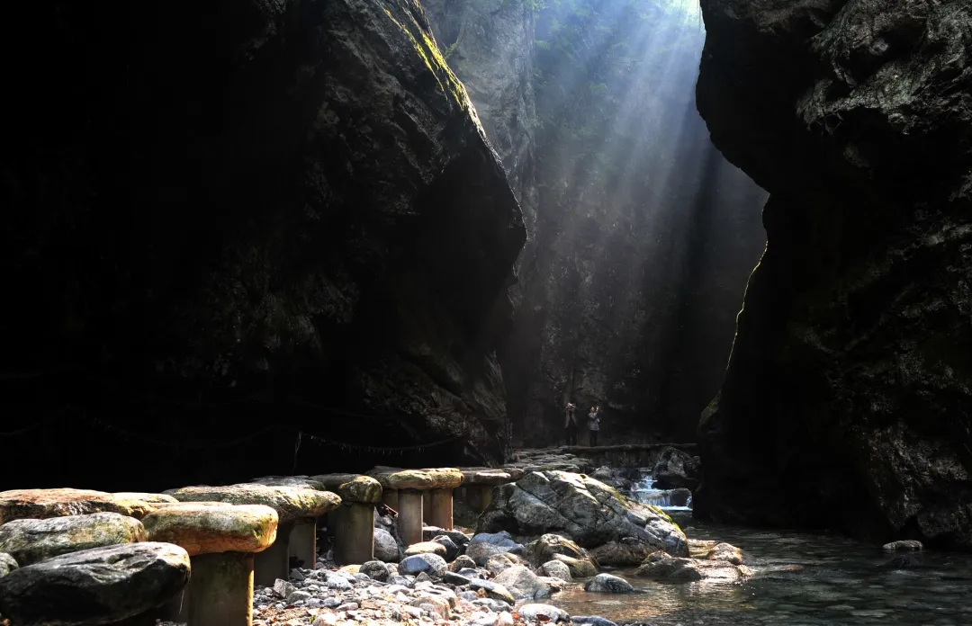 羚牛谷中,松林掩映中拾级而上,满眼绿意,清脆的鸟鸣声萦绕耳边,近在咫尺却又神秘无法捕捉,清涧飞泻,恣意洒脱,飞溅的水雾荡涤着尘埃,就连灵魂仿佛也被洗刷一新,焕然重生。