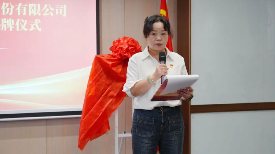 在热烈的掌声中,高新区工信局副局长、企业党委委员廖鑫与金花股份董事长邢雅江共同为“中共金花企业(集团)股份有限公司委员会”揭牌。鲜红的党徽在灯光下熠熠生辉,象征着金花股份党委正式肩负起团结带领全体党员职工听党话、跟党走的政治责任。