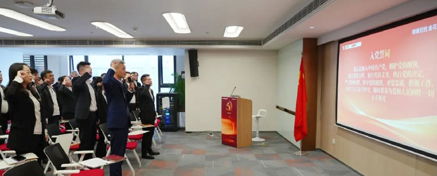 最后在金花股份党委书记赵广东同志带领下,全体党员面向党旗庄严宣誓,重温入党誓词。铿锵有力的誓言回荡在会场,彰显出金花党员不忘初心、牢记使命的坚定信念。