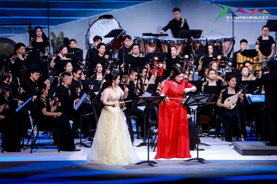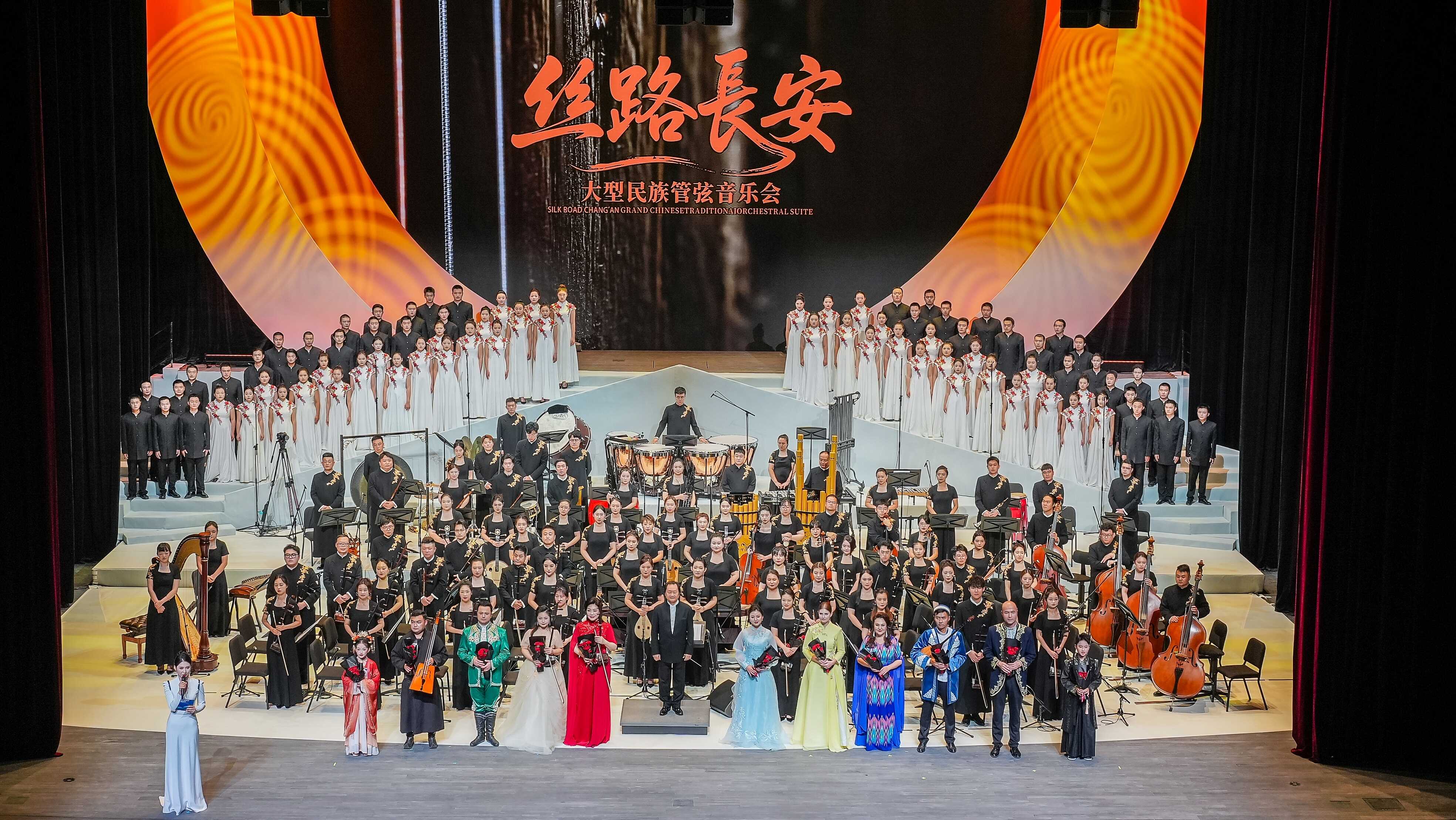 作为第十一届丝绸之路国际艺术节的开幕演出,大型民族管弦乐《丝路长安》由著名指挥家张列执棒,携手陕西民族乐团、陕西省广播电视民族乐团、西安石油大学合唱团及多位卓越演奏家联袂呈现,分为《梦起长安》《万里跋涉》《五彩绚丽》《平安平安》《丝绸之路》《世界之门》六个章节,艺术化呈现了丝路文明的交融与传承。双胡琴深情对话、多种民族乐器碰撞共鸣、磅礴合唱恢弘压轴,既展现了长安的开放胸襟,也传递出构建人类命运共同体的时代强音。