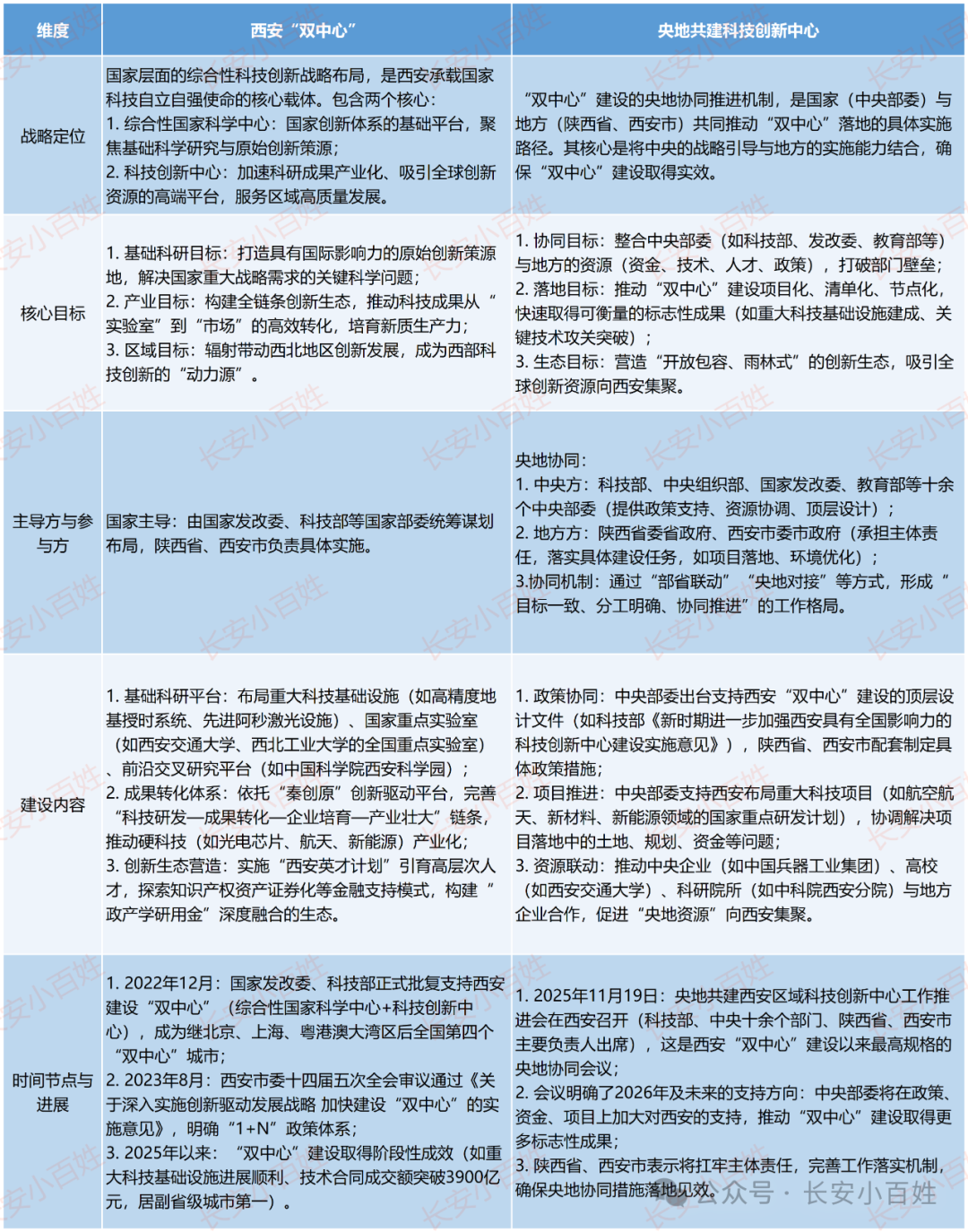 我对比了下“双中心”和央地共建西安“科技创新中心”的区别,做了一张表👇👇