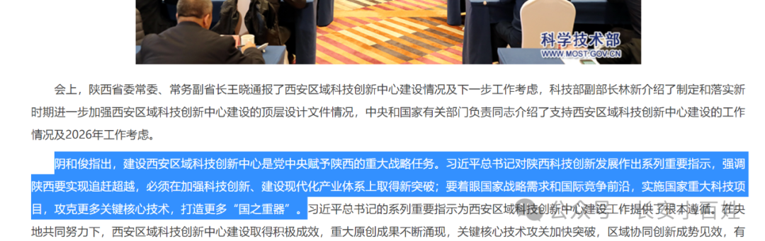 会议通稿中明确,这是 “党中央赋予陕西的重大战略任务” ,目标是打造 “科技强国建设的战略支点”。